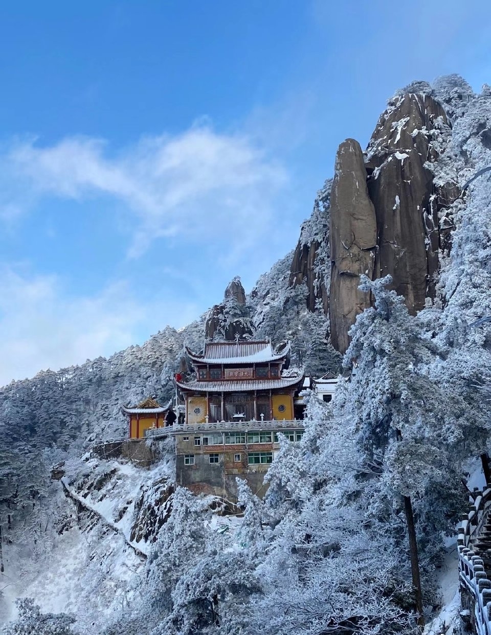 黃山,位于安徽省黃山市,原名黟山,唐朝時更名為黃山,取自“黃帝之山”之意。黃山是世界自然和文化雙遺產,世界地質公園,中國十大名勝古跡之一,國家5A級旅游景區。 黃山風景區面積160.6平方千米,東起黃獅 ,西至小嶺腳,北始二龍橋,南達湯口鎮,分為溫泉、云谷、玉屏、北海、松谷、釣橋、浮溪、洋湖、福固九個管理區,包括200多個大小景點。 黃山以奇松、怪石、云海、溫泉、冬雪“五絕”著稱于世,擁有“天下第一奇山”之稱。“五岳歸來不看山,黃山歸來不看岳”是對黃山最好的評價。